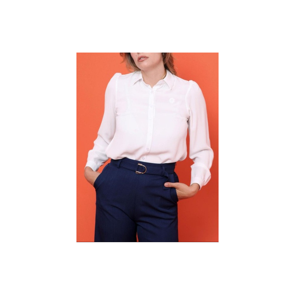 Ses détails raffinés, comme les revers du col, les épaules légèrement bouffantes et le motif à pois ajoutent une note féminine et sophistiquée. Facile à assortir, ce chemisier se porte aussi bien avec un pantalon habillé qu’avec une jupe ou un jean pour un look chic et décontracté.